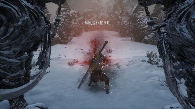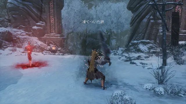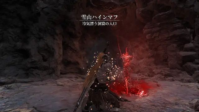 - 飛び降りて進んだ先–小さな足場などを飛び降りて進んだ後に、雪人(イエティ)がうろついている広めの空間に出る直前。手前の坂道を上がった突き当たりの岩陰に鬼石がある。見落としやすいので周囲をよく探索すること。