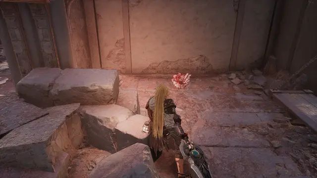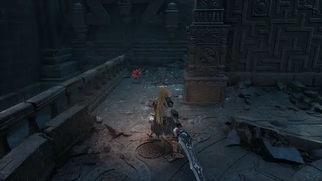 - 忘れられた寺院・深部 – 寺院深部の祭壇部屋。強敵とのチュートリアル戦(ボス戦)後、先に進んだ先の石像2体を向かい合わせになるよう回転させると新たに鬼石が出現する。高所のため投槍で破壊して入手。