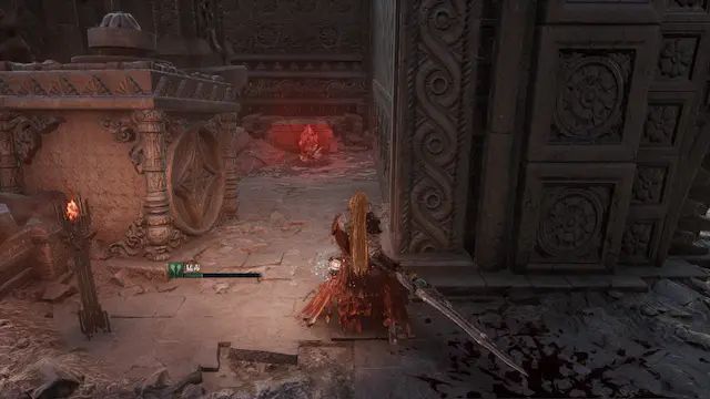 - 燃え盛る街 – 陥落した城塞の手前の大きな石像が二つある広場の小さな道の先、扉を破って奇襲してくる敵がいる建物の二階にある。